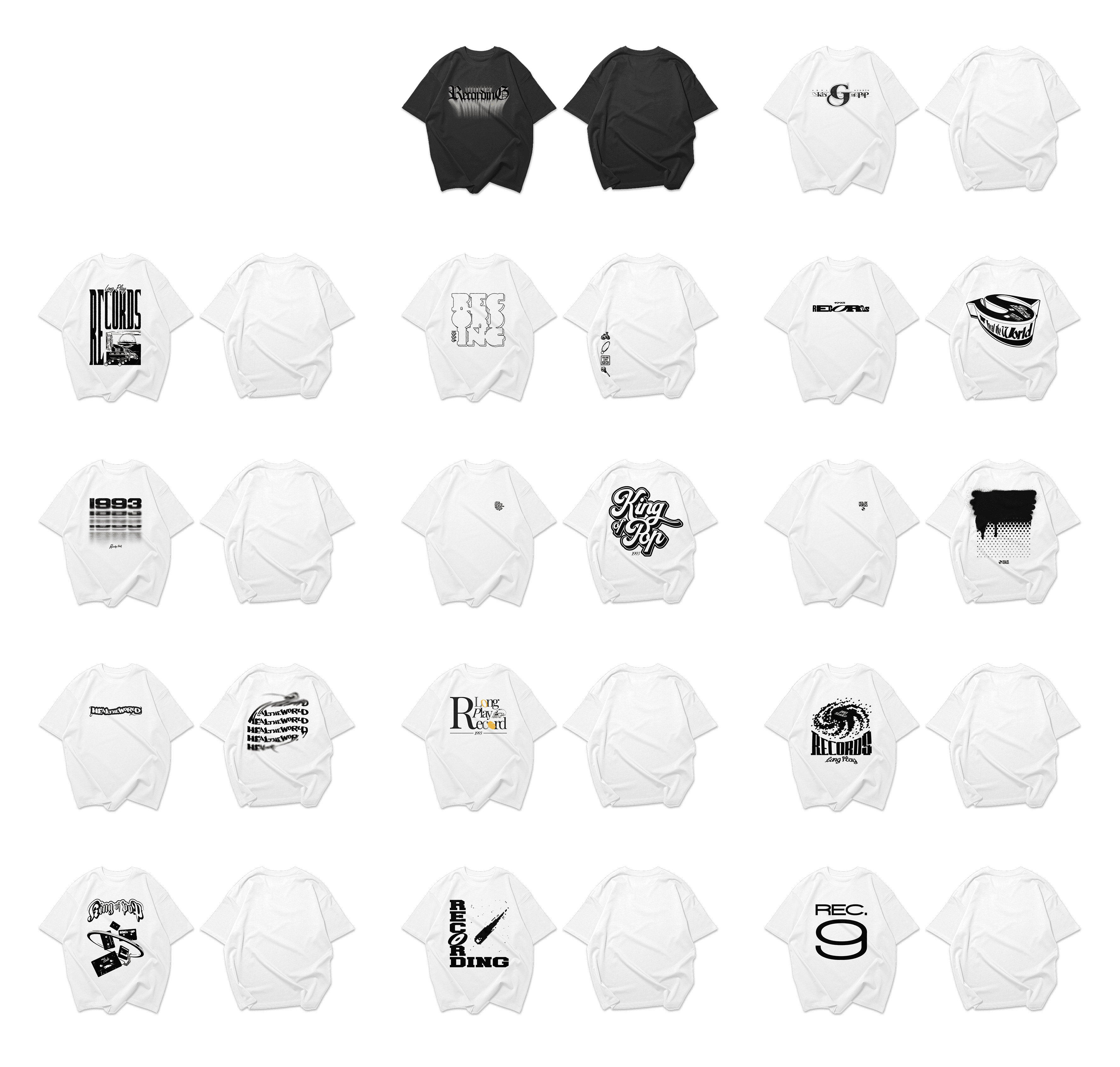 In 2023, Calipotatoshop collaborated with 199STUDIO on graphic design for its 24 SP season collection. 1993STUDIO is a brand that showcases colorful fashions, inspired by the music and artistic spirit of the 90's. Maintaining the mood of the original 1993STUDIO, we were asked for graphics that can blend cassette tapes, LP albums, and POP music.