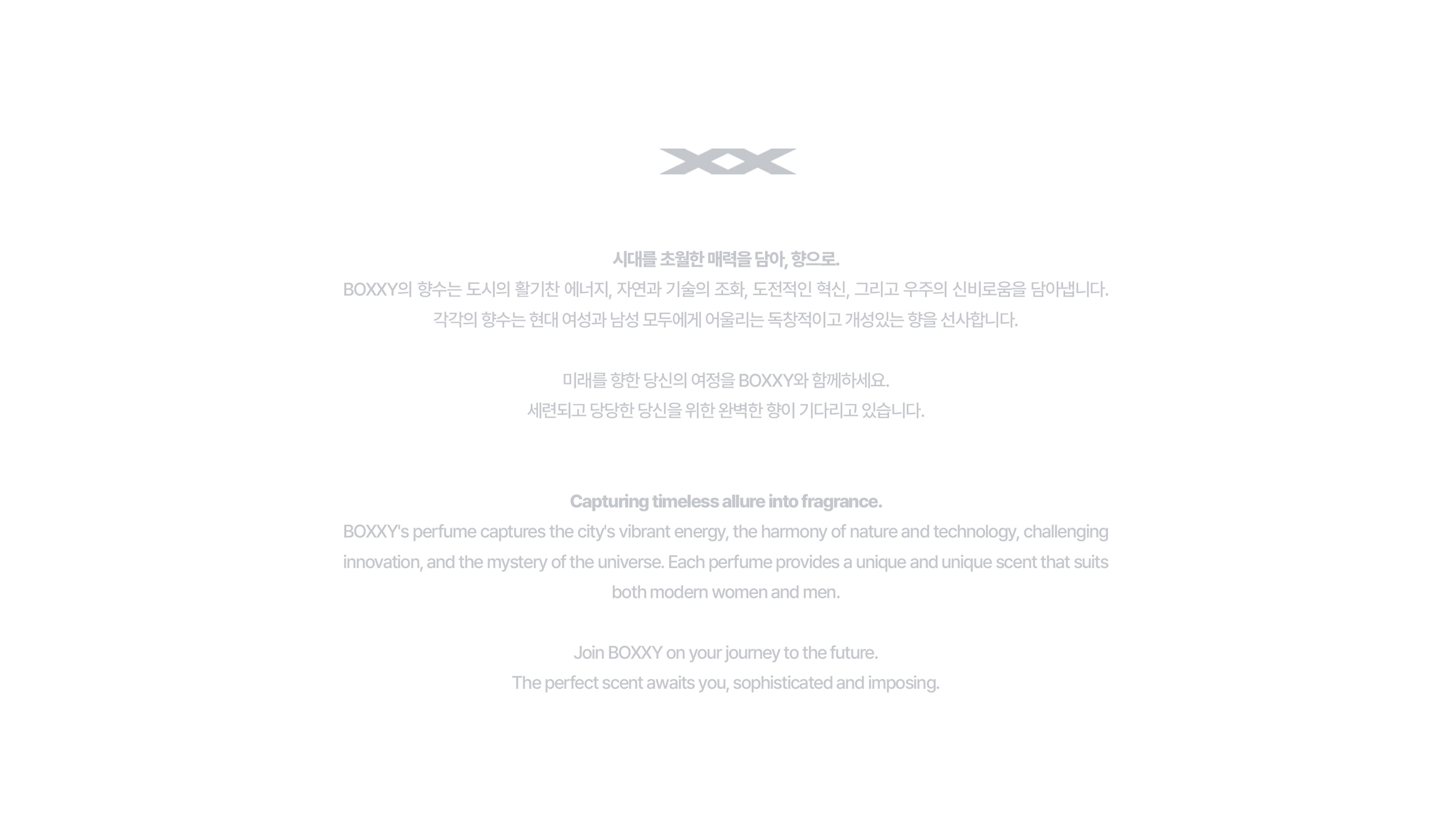 The name BOXXY, a combination of BOSSY and XX, symbolizes confidence and innovation, offering a unique fragrance experience. And it is designed for modern women and men who pursue a futuristic lifestyle. BOXXY is committed to sustainability with simple and eco-friendly packaging, establishing itself as an ethical and responsible brand. Its fragrances are more than just scents; they provide a special experience that captures the stories of contemporary life.