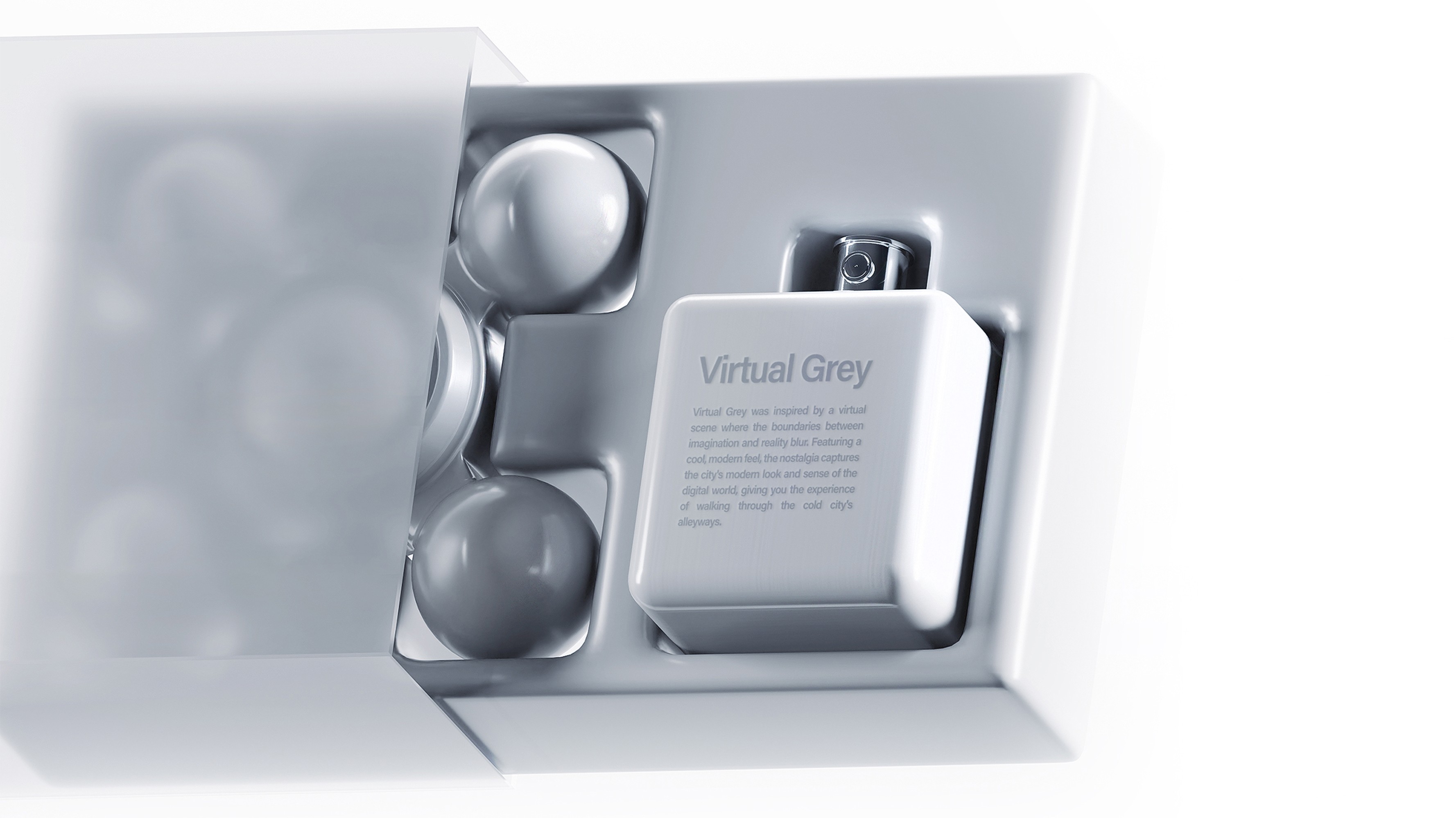 Inspired by an imagined scene where the boundary between imagination and reality becomes blurred. This fragrance captures the cool, modern impression of a futuristic city infused with digital sensibilities, offering the experience of walking through sleek, metallic urban streets.