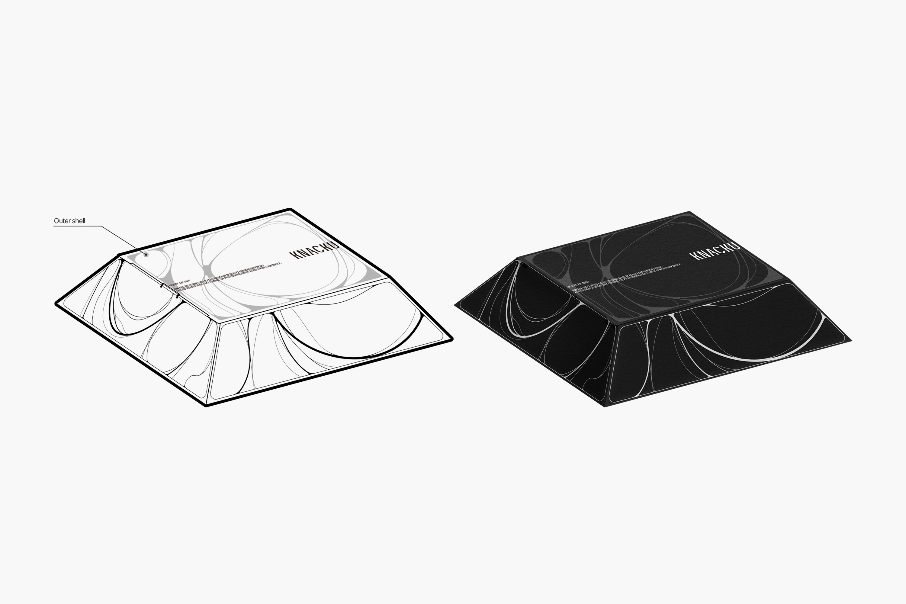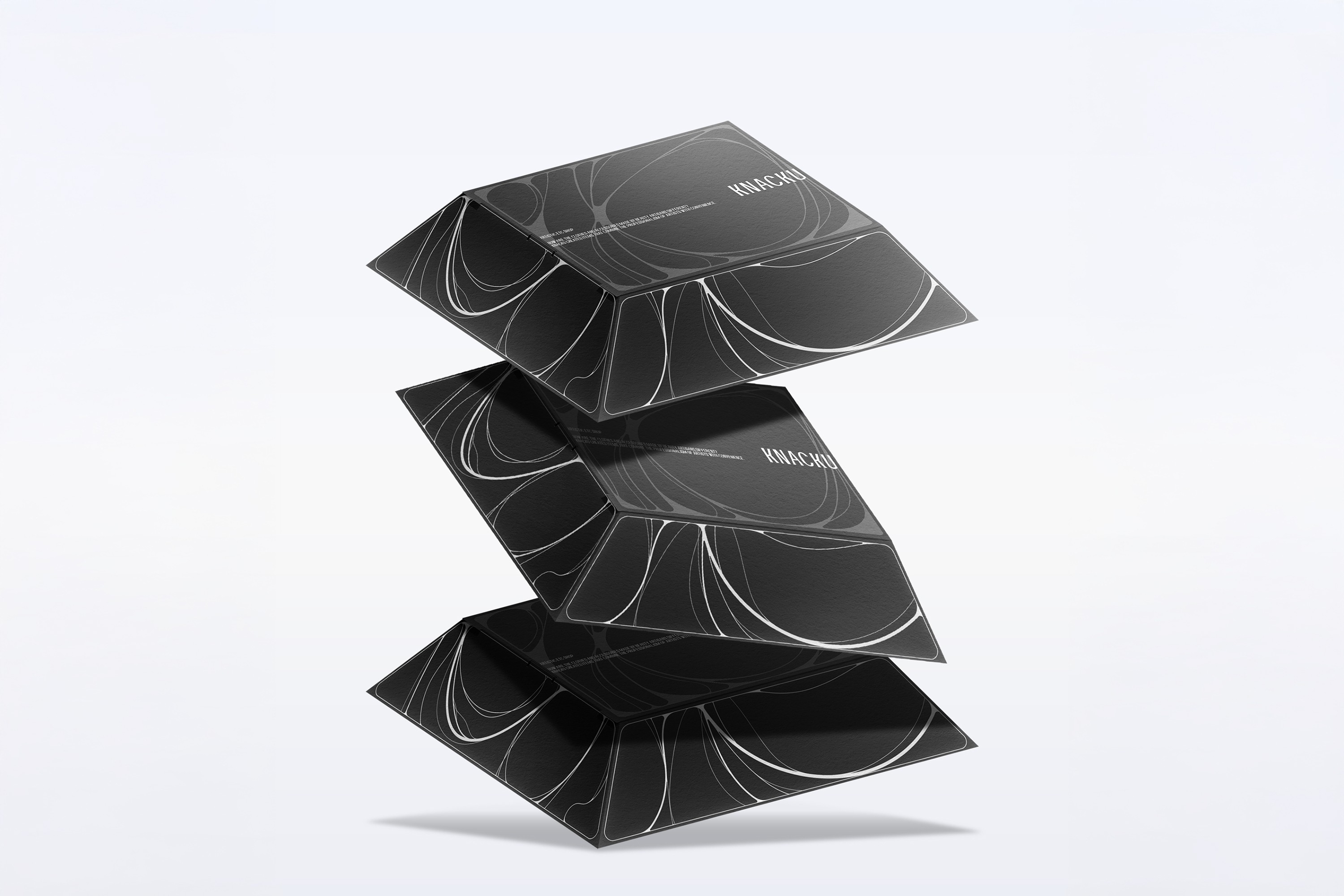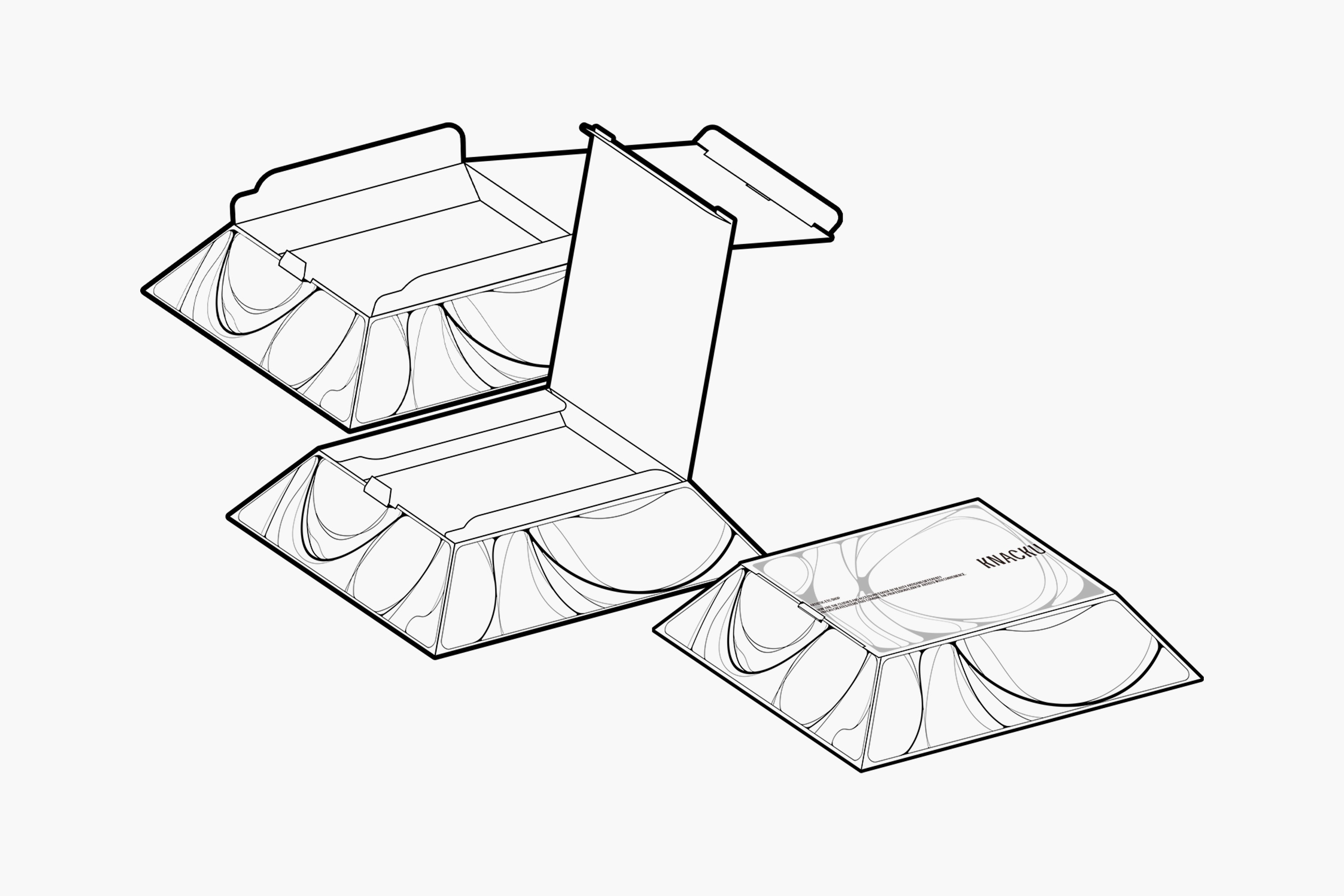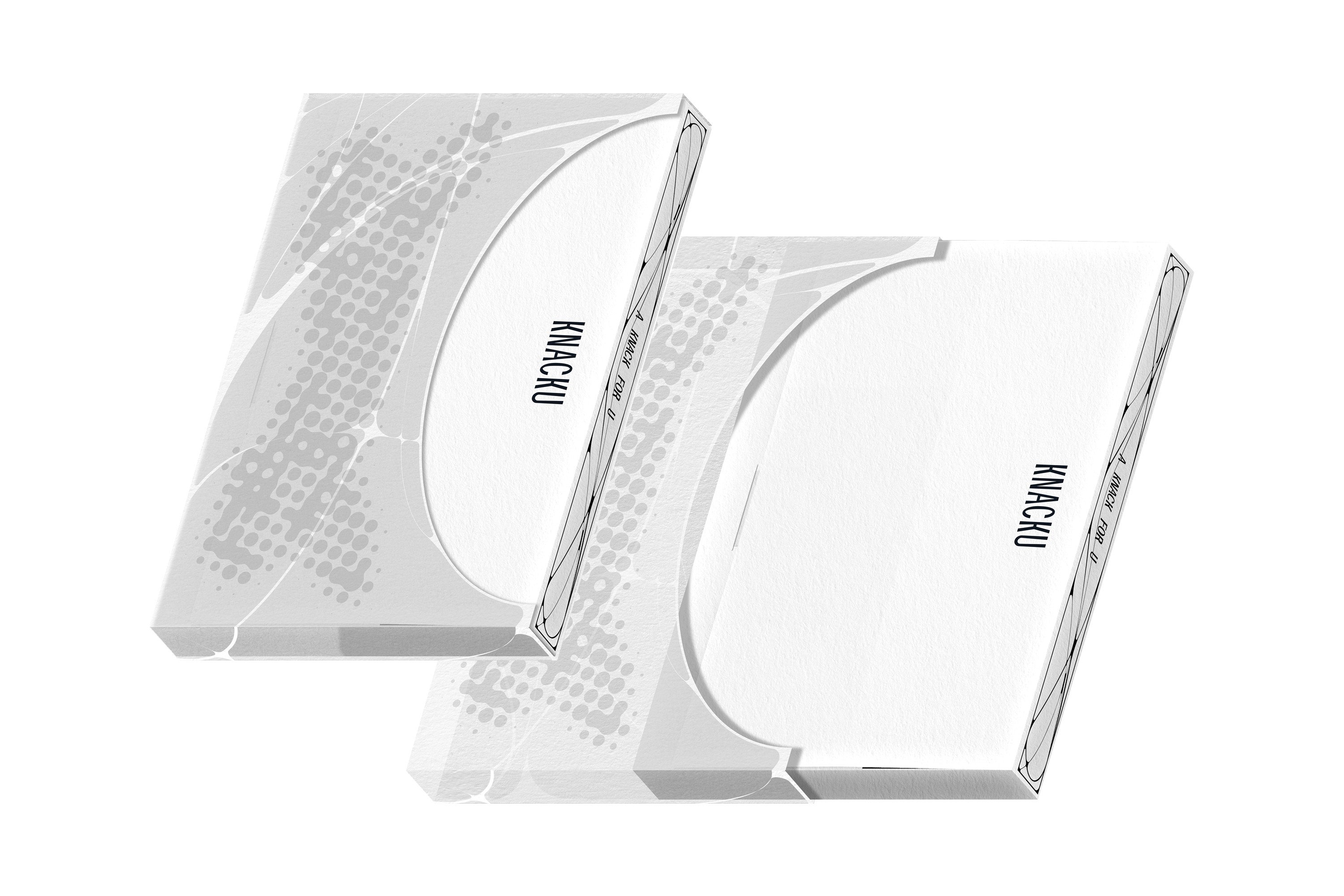 KNACKU firmly inherits the identity of A KNACK, and this was something we fully immersed ourselves in. The packaging needed to act as a medium that clearly conveys the brand’s sensibility and philosophy. Moving away from the standardized structure of off-the-shelf boxes, we visually expressed KNACKU’s identity through fluid curves and flowing graphic elements unique to the brand. The package was developed as a three-dimensional form that feels solid yet emphasizes structural beauty, while maximizing the aesthetics of a monochromatic palette. Above all, the goal was to allow people to experience the brand identity directly through the physicality of the packaging itself.