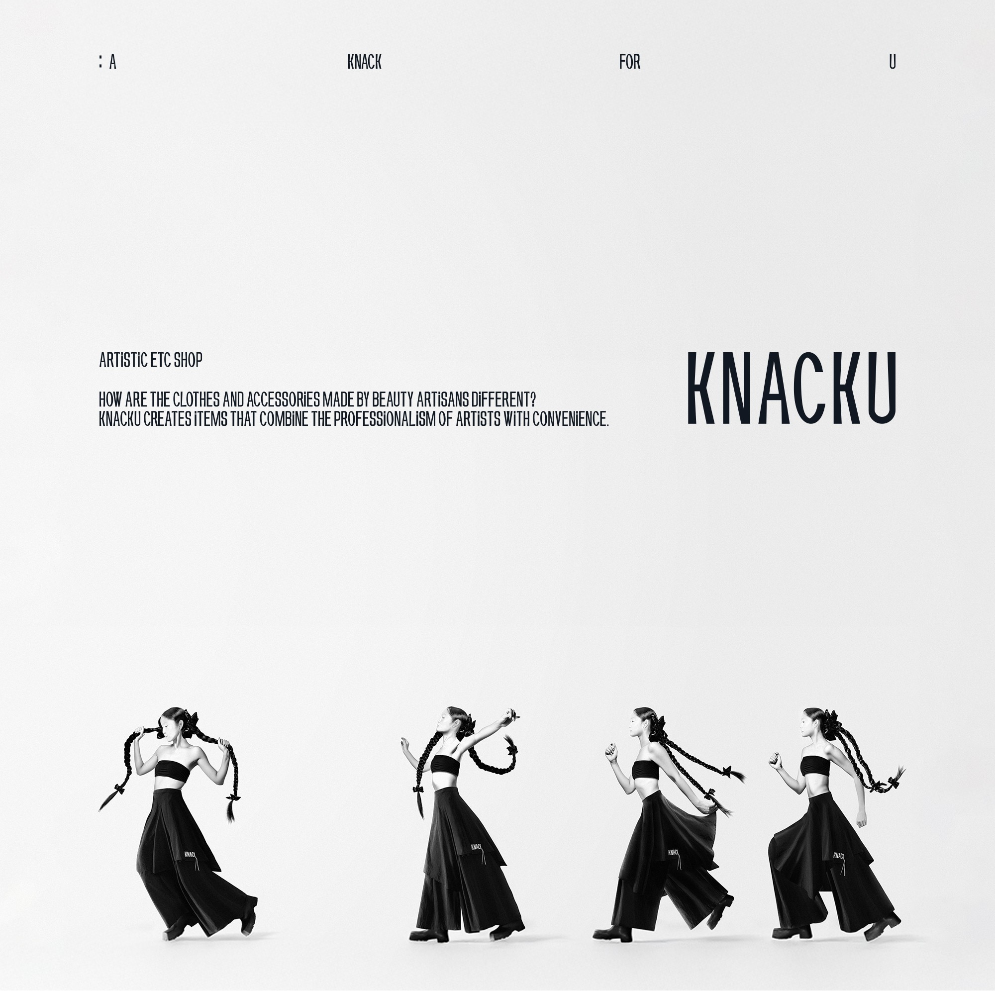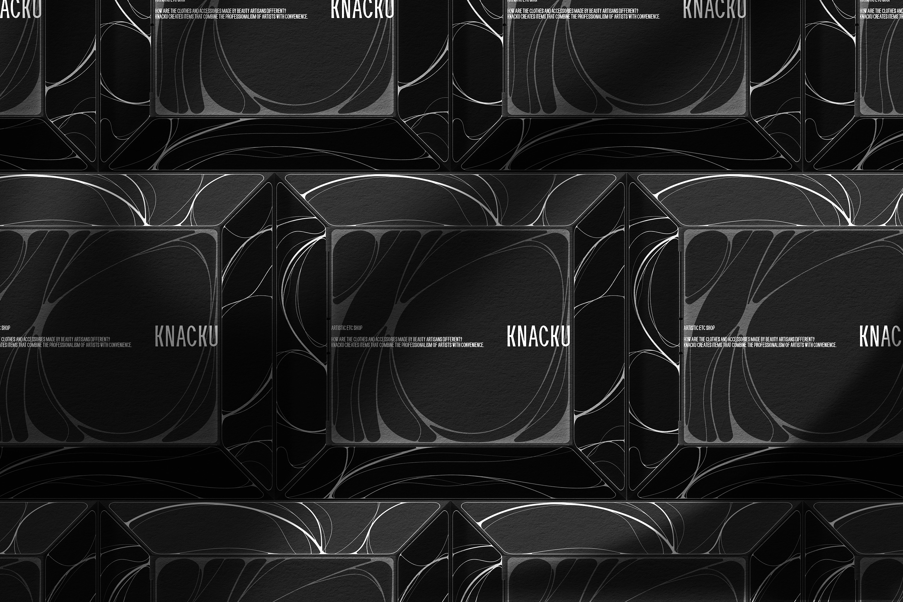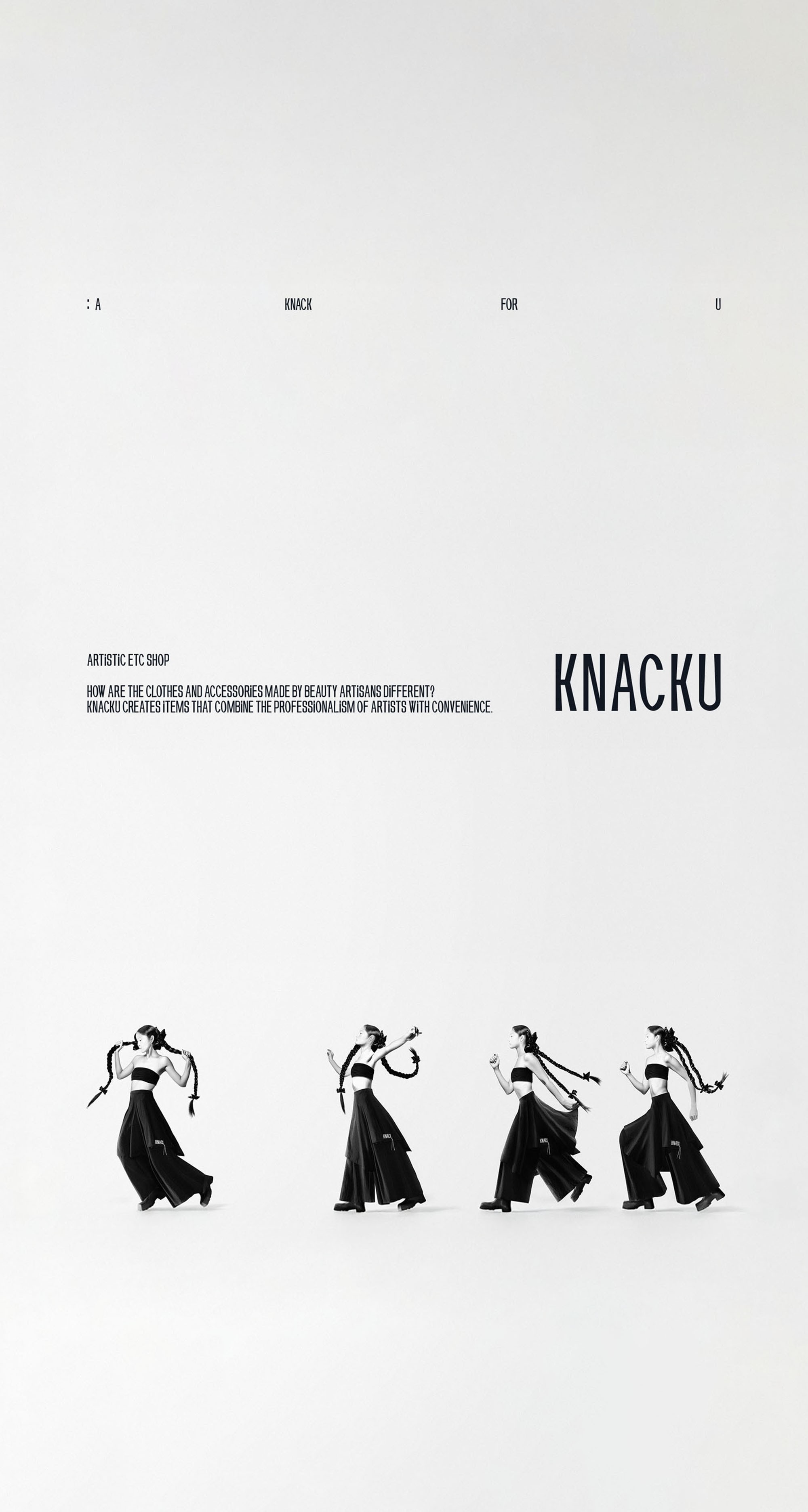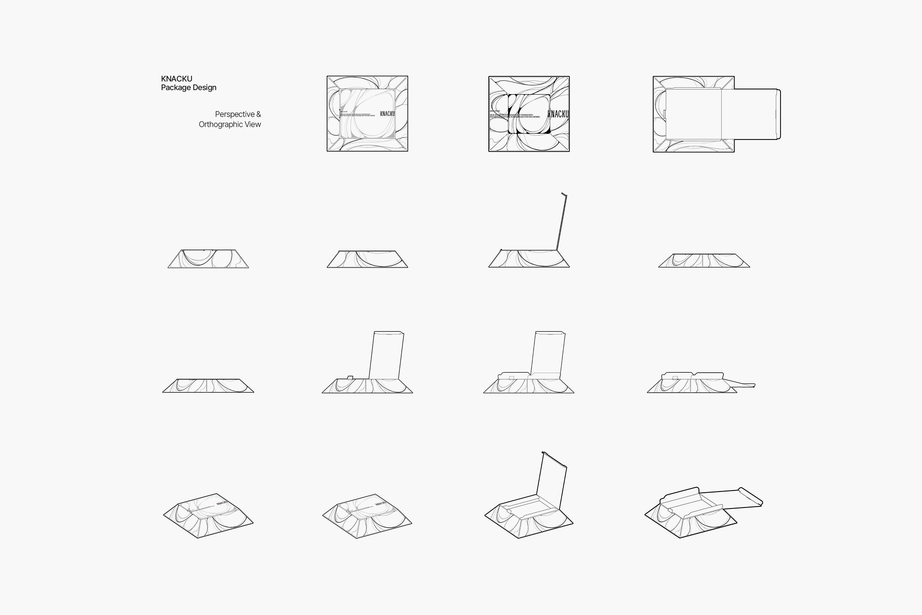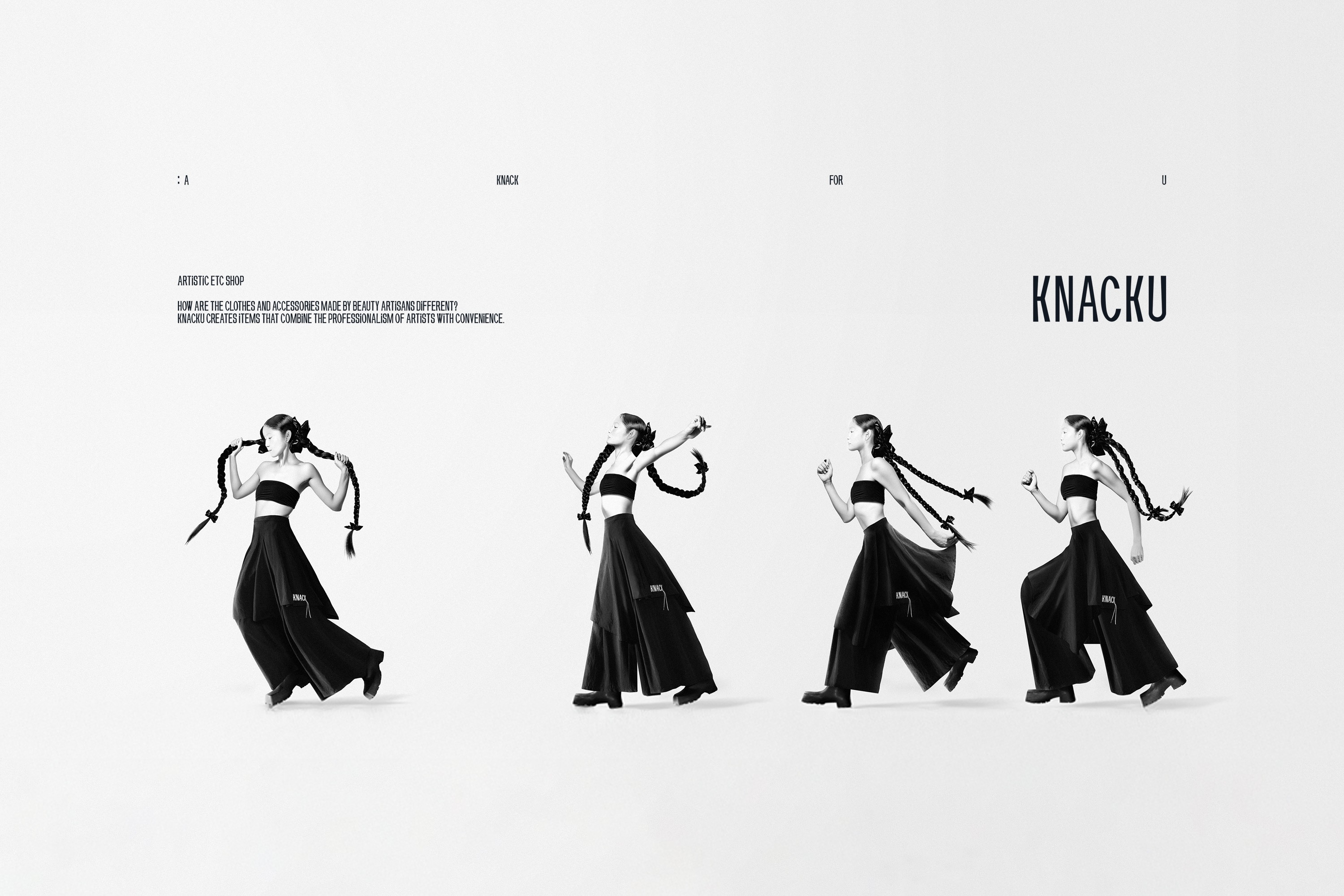 KNACKU firmly inherits the identity of A KNACK, and this was something we fully immersed ourselves in. The packaging needed to act as a medium that clearly conveys the brand’s sensibility and philosophy. Moving away from the standardized structure of off-the-shelf boxes, we visually expressed KNACKU’s identity through fluid curves and flowing graphic elements unique to the brand. The package was developed as a three-dimensional form that feels solid yet emphasizes structural beauty, while maximizing the aesthetics of a monochromatic palette. Above all, the goal was to allow people to experience the brand identity directly through the physicality of the packaging itself.