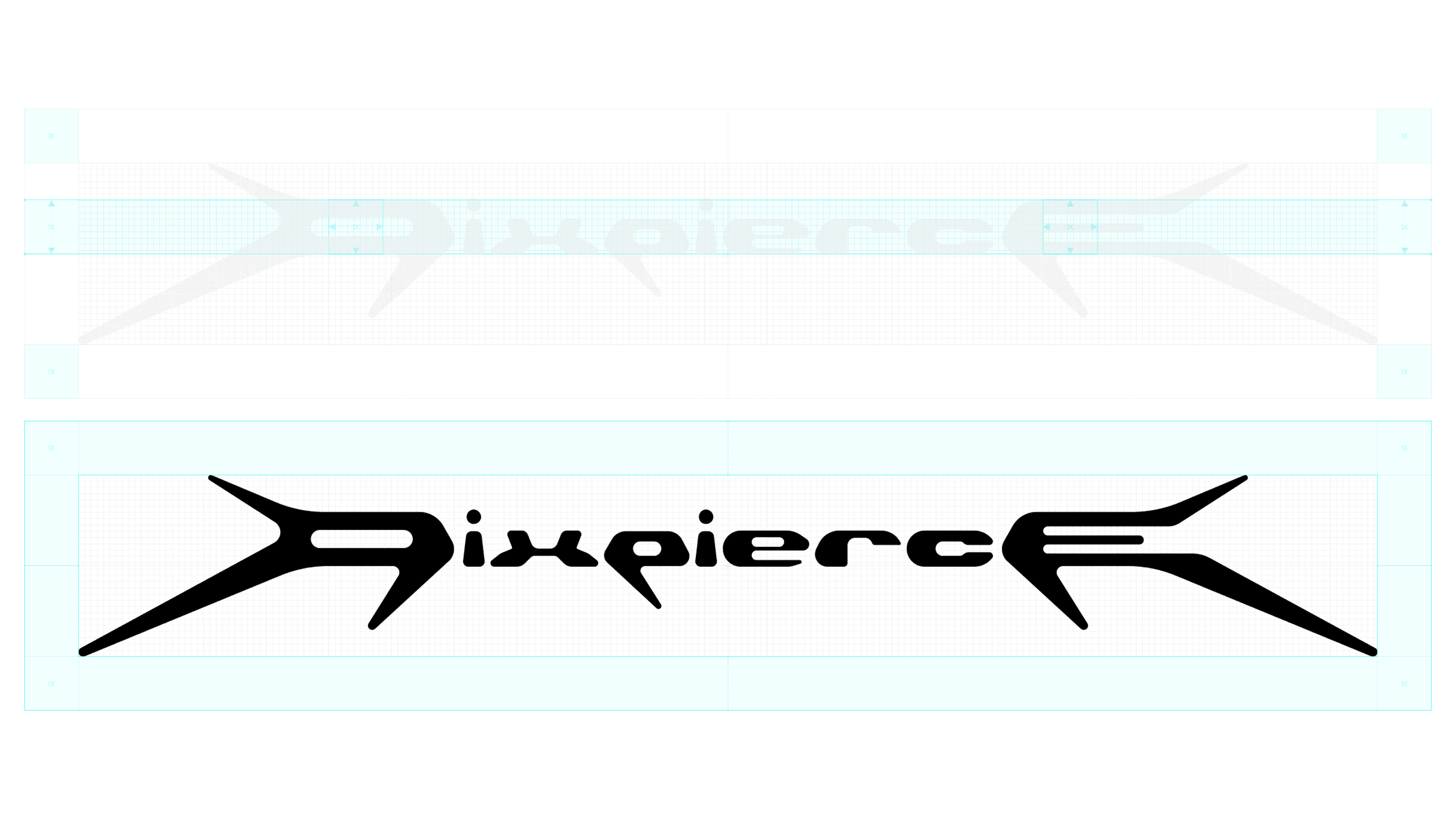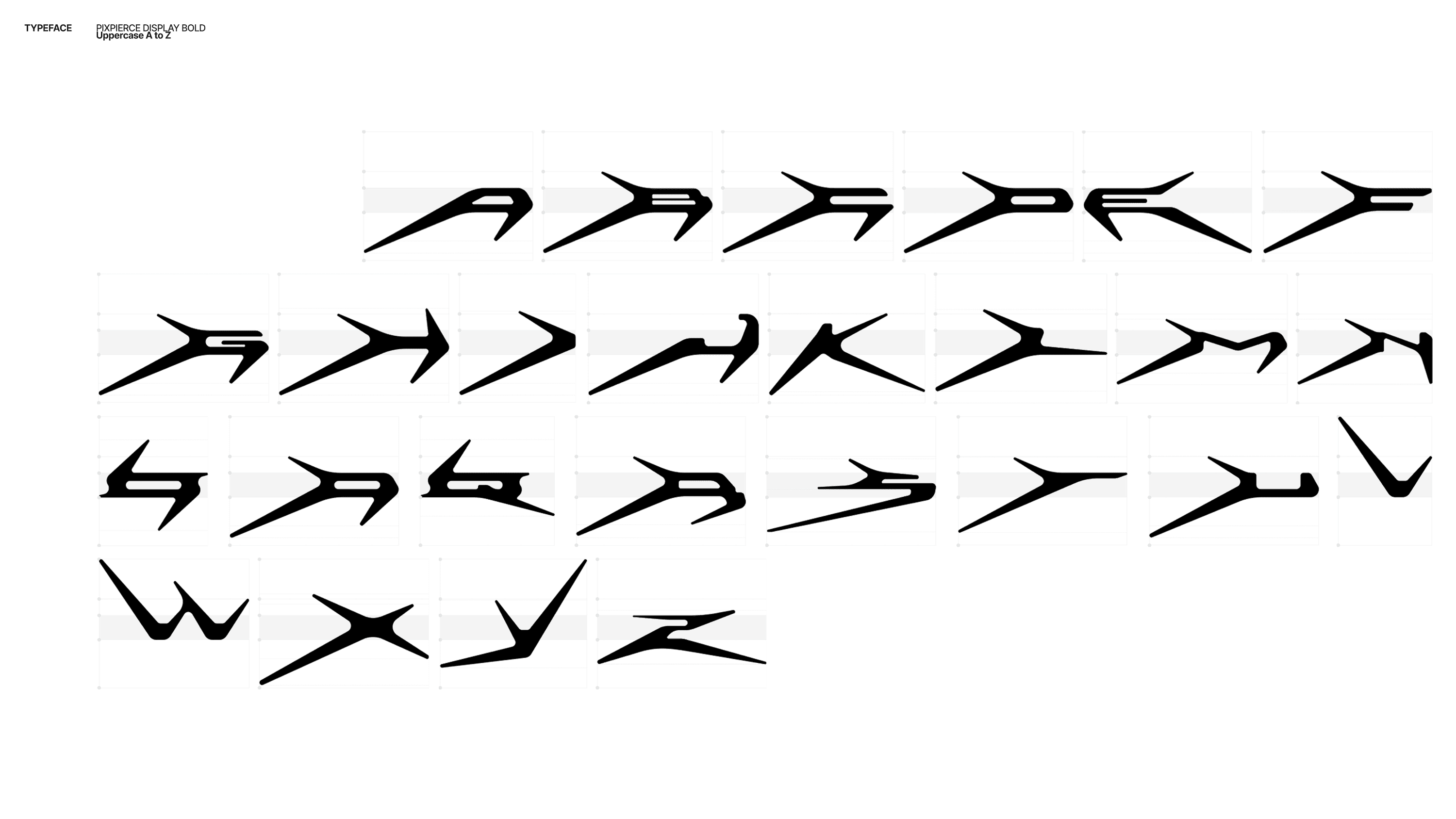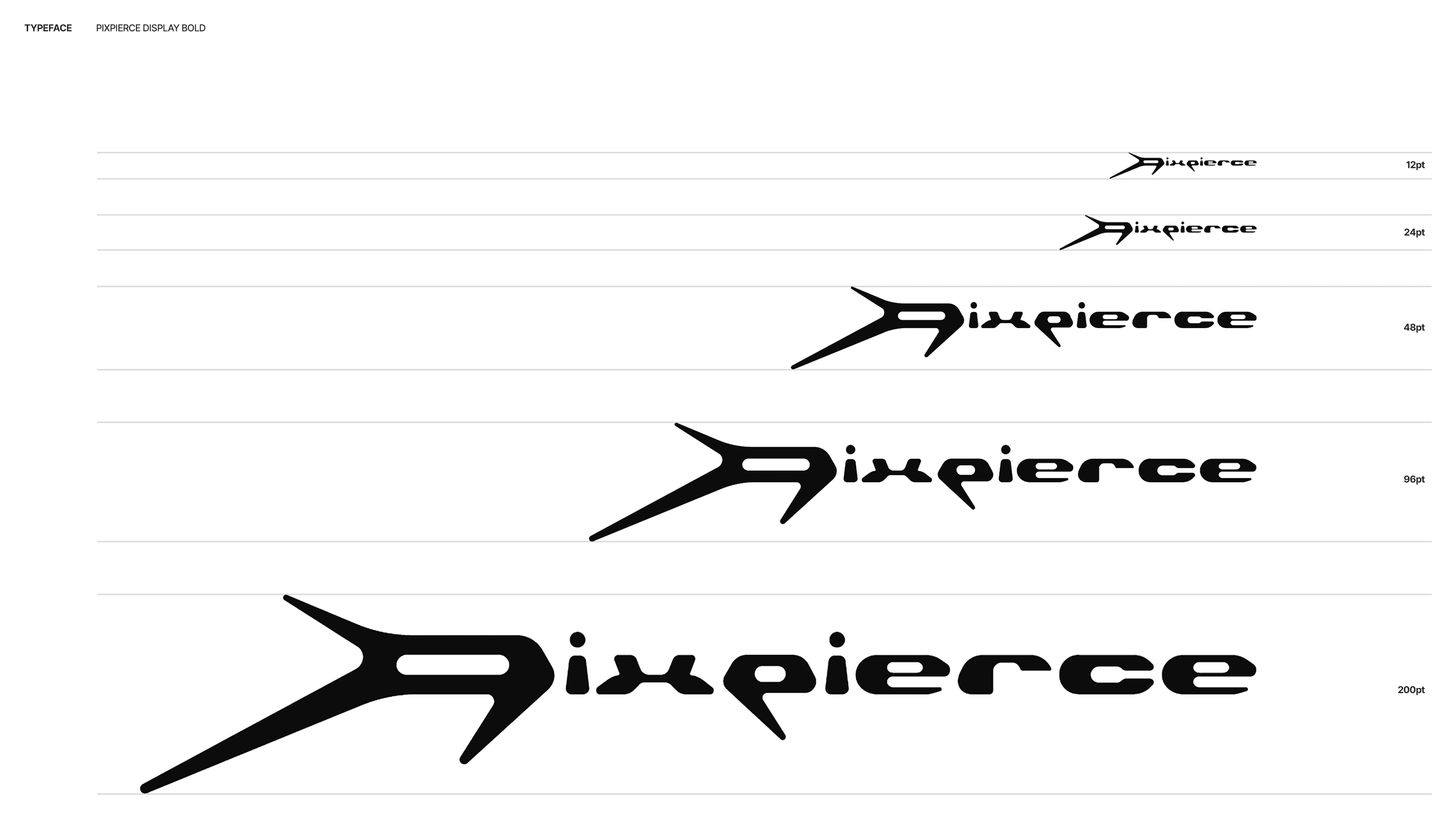 The custom typeface Pixpierce-Display Bold is an expanded logotype-based font that applies the structural logic of the lettermark. The typeface focuses on directionality and momentum rather than stable symmetry, removing unnecessary curves to emphasize the raw energy of straight lines. It is the brand asset that most directly communicates PIXPIERCE’s attitude.