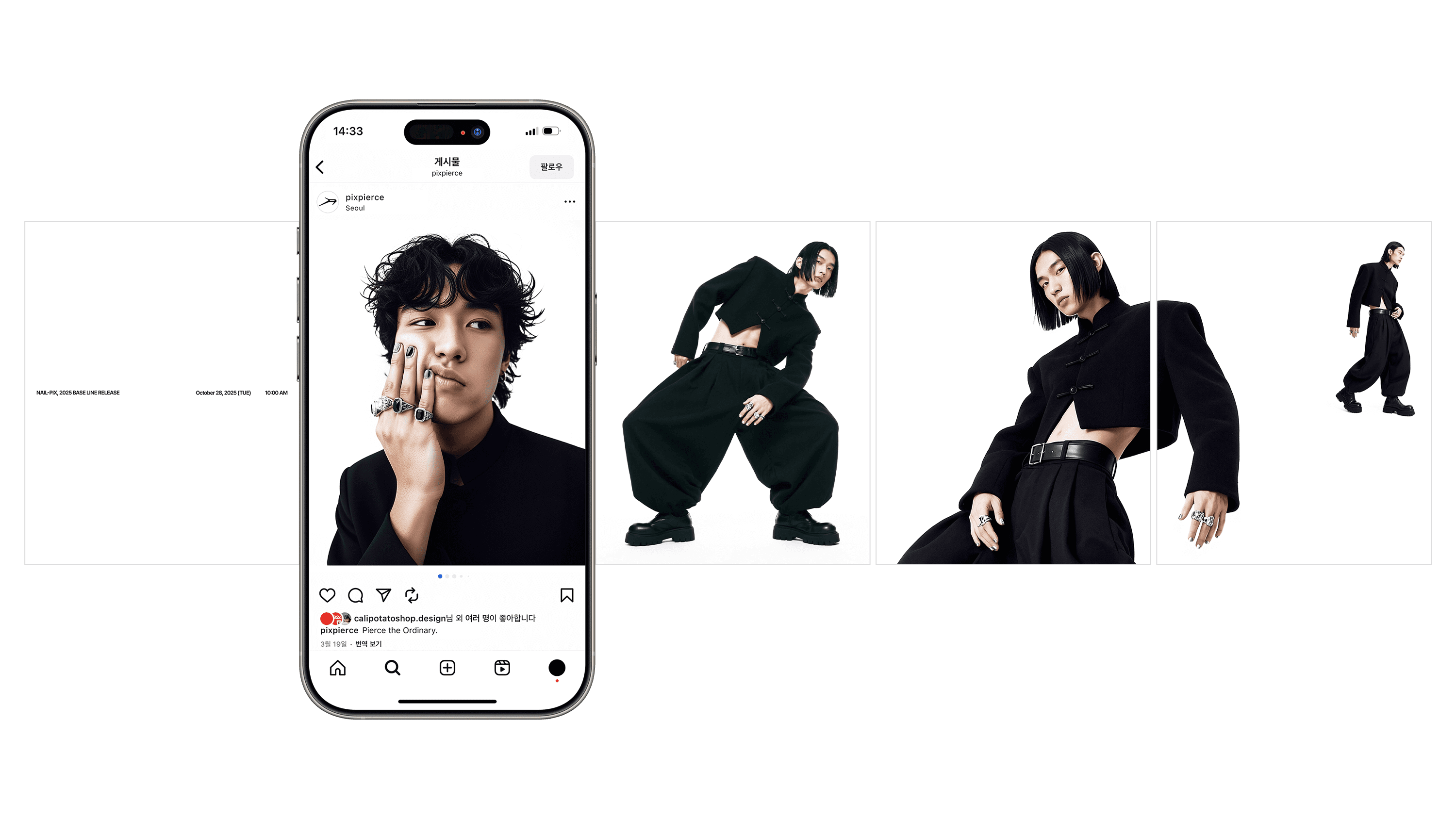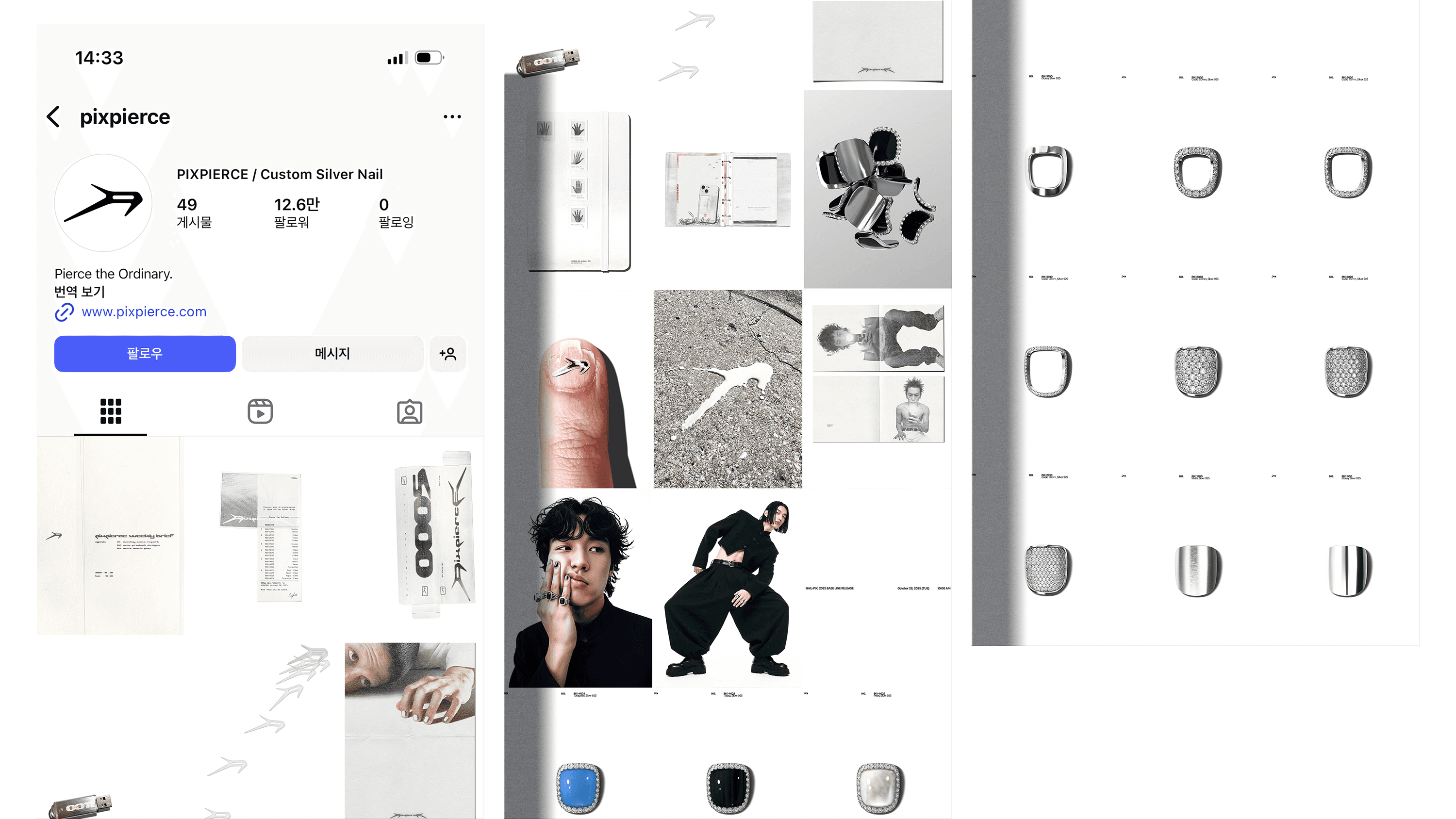 This spring, we met PIXPIERCE. PIXPIERCE is a brand that aims to redefine the norms and boundaries of beauty within the unfamiliar category of men’s metal nail accessories. Based on the brand’s powerful items, we expanded its philosophy visually and built it into a functioning system.