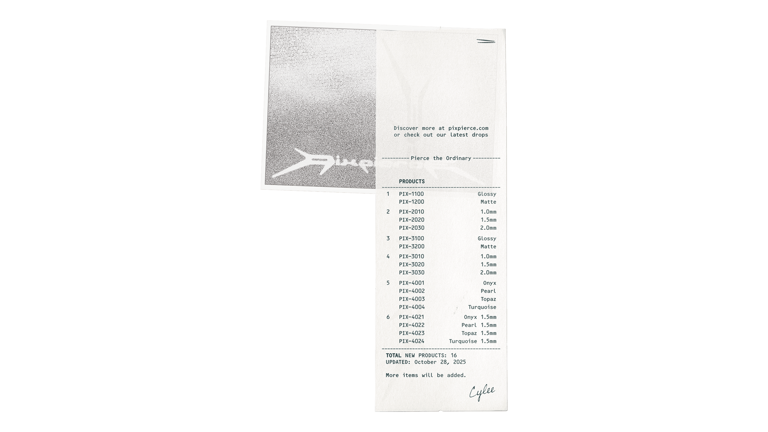 PIXPIERCE’s philosophy consists of the following: ¹Detachment (Emotional restraint), ²Ferocity (Raw honesty), ³Intentionality (Deliberate attitude). These three Core Values form the pillars of the brand and the starting point of every visual language. We divided this philosophy into the two keywords “Pierce” and “Pix(Fix),” interpreting them as the act of piercing through what is ordinary (Pierce) and the convictions one must hold (Pix). Based on this, we established the slogan “Pierce the Ordinary.”