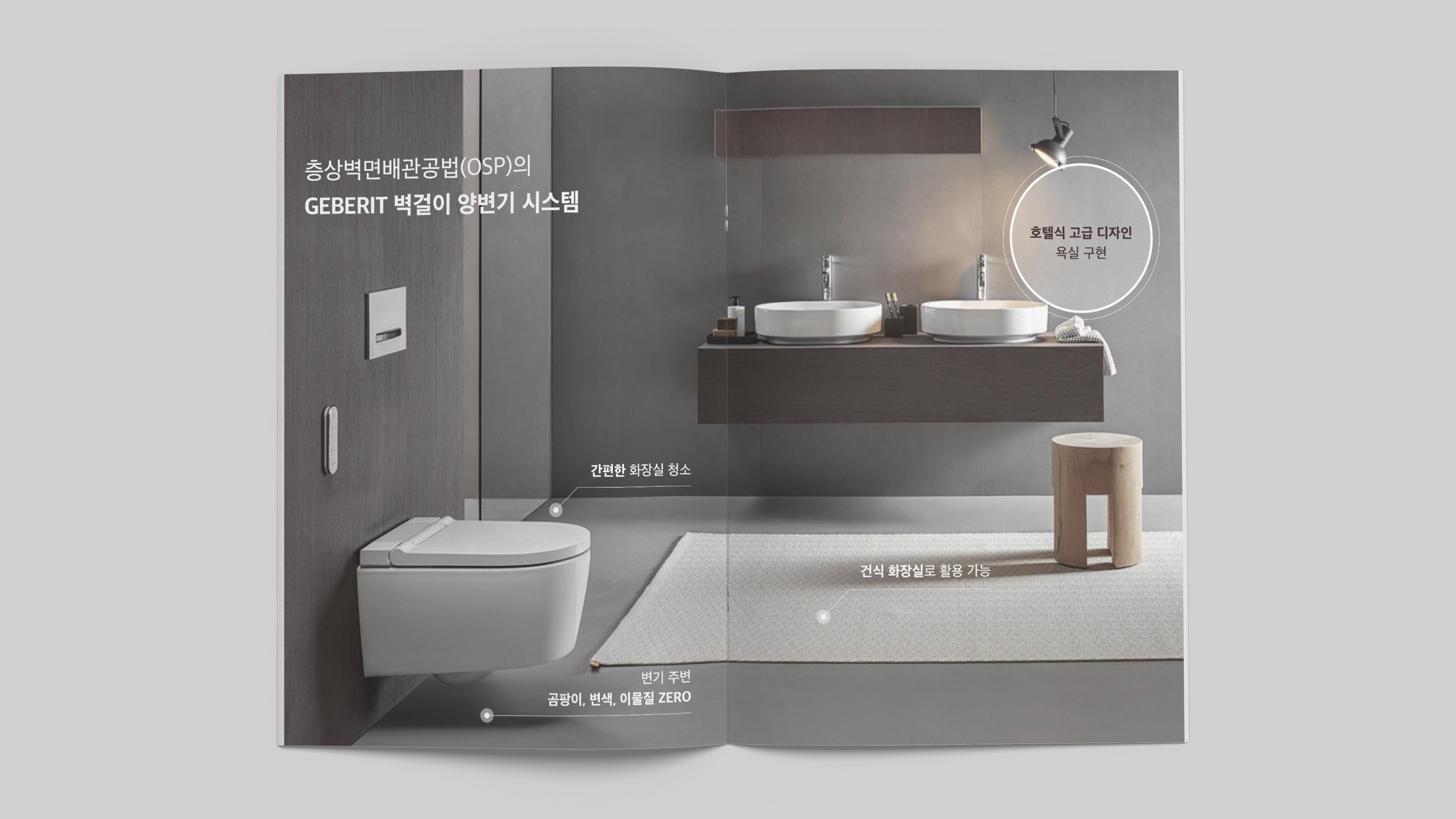 We designed the catalogue <A Proposal for a Premium Bathroom for Hannam District 3>, which introduces the OSP system to be applied to Hannam District 3. The content was carefully refined and edited to make the structure, components, and principles of OSP easy to understand.